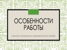 Особенности работы в детском загородном оздоровительном лагере Детский