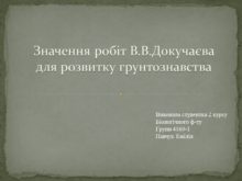 Значення робіт В.В.Докучаєва для розвитку грунтознавства Виконала студентка