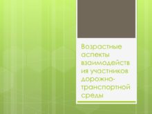 Возрастные аспекты взаимодействия участников дорожно- транспортной среды Ребенок