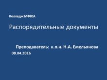 Колледж МФЮА Распорядительные документы Преподаватель: к.п.н. Н.А. Емельянова