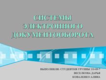 СИСТЕМЫ ЭЛЕКТРОННОГО ДОКУМЕНТООБОРОТА ВЫПОЛНИЛИ: СТУДЕНТКИ ГРУППЫ ЭЭ-09-7 ВЕСЕЛКОВА
