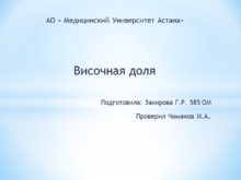 АО « Медицинский Университет Астана» Височная доля Подготовила: