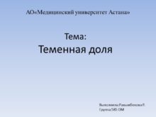 Тема: Теменная доля АО«Медицинский университет Астана» Выполнила:Рахымбекова Р.