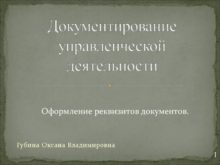 Губина Оксана Владимировна Документирование управленческой деятельности 1 Оформление