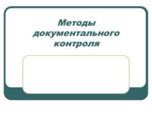 Методы документального контроля Виды документального контроля 1. Исследование
