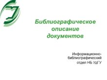 Библиографическое описание документов Информационно-библиографический отдел НБ УдГУ Нормативные