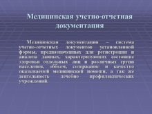 Медицинская учетно-отчетная документация Медицинская документация – система учетно-отчетных