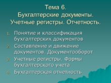 Тема 6. Бухгалтерские документы. Учетные регистры. Отчетность. Понятие