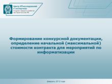 Формирование конкурсной документации, определение начальной (максимальной) стоимости контракта