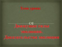 Движущие силы эволюции. Доказательства эволюции Тема урока: Эволюция