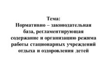Тема: Нормативно – законодательная база, регламентирующая содержание и