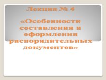 Лекция № 4 «Особенности составления и оформления распорядительных