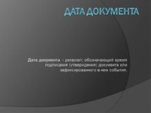 Дата документа Дата документа – реквизит, обозначающий время