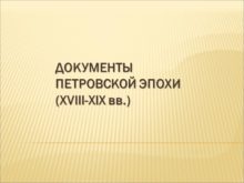 ДОКУМЕНТЫ ПЕТРОВСКОЙ ЭПОХИ (XVIII-XIX вв.) Петр I ЗАКОНОДАТЕЛЬНЫЕ