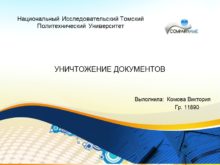Национальный Исследовательский Томский Политехнический Университет УНИЧТОЖЕНИЕ ДОКУМЕНТОВ Выполнила: