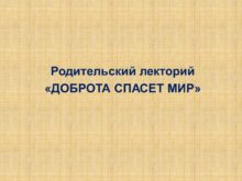 Родительский лекторий «ДОБРОТА СПАСЕТ МИР» Доброта — морально-ценностная