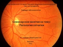 Кафедра офтальмологии Патология сетчатки ВОРОНЕЖСКАЯ ГОСУДАРСТВЕННАЯ МЕДИЦИНСКАЯ АКАДЕМИЯ
