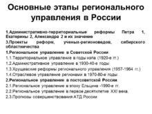 Основные этапы регионального управления в России 1.Административно-территориальные реформы