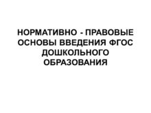 НОРМАТИВНО — ПРАВОВЫЕ ОСНОВЫ ВВЕДЕНИЯ ФГОС ДОШКОЛЬНОГО ОБРАЗОВАНИЯ