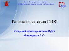 Развивающая среда ГДОУ Старший преподаватель КДО Макатрова Л.О.