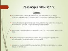 Революция 1905-1907 г.г. Причины : противостояние самодержавия и