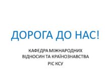 ДОРОГА ДО НАС! КАФЕДРА МІЖНАРОДНИХ ВІДНОСИН ТА КРАЇНОЗНАВСТВА