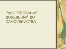 РАССЛЕДОВАНИЕ ДОВЕДЕНИЙ ДО САМОУБИЙСТВА План лекции Криминалистическая характеристика