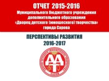 ОТЧЕТ 2015-2016 Муниципального бюджетного учреждения дополнительного образования «Дворец