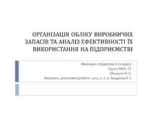 ОРГАНІЗАЦІЯ ОБЛІКУ ВИРОБНИЧИХ ЗАПАСІВ ТА АНАЛІЗ ЕФЕКТИВНОСТІ ЇХ