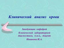 Клинический анализ крови Заведующая кафедрой Клинической лабораторной диагностики,