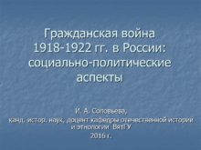 Гражданская война 1918-1922 гг. в России: социально-политические аспекты