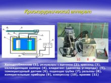 Холодообменник (1), резервуары с ацетоном (2), криозонд (3),