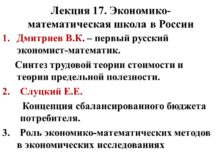 Лекция 17. Экономико-математическая школа в России Дмитриев В.К.