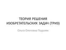 ТЕОРИЯ РЕШЕНИЯ ИЗОБРЕТАТЕЛЬСКИХ ЗАДАЧ (ТРИЗ) Ольга Олеговна Подоляк