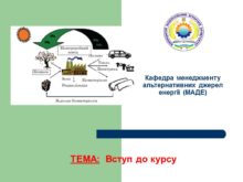 Кафедра менеджменту альтернативних джерел енергії (МАДЕ) ТЕМА: Вступ