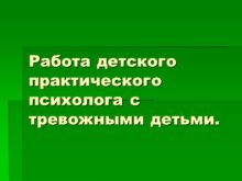 Работа детского практического психолога с тревожными детьми. В