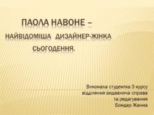 Паола Навоне – найвідоміша дизайнер-жінка сьогодення. Виконала студентка