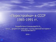 «Перестройка» в СССР 1985-1991 гг. Разработано Соловьевой И.А.,