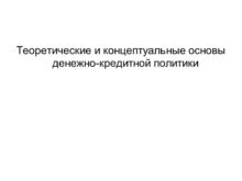 Теоретические и концептуальные основы денежно-кредитной политики Вопросы лекции