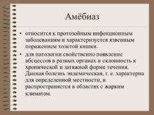 Амёбиаз относится к протозойным инфекционным заболеваниям и характеризуется