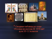 Сводная таблица по теме «Русская культура IX-XVII вв»