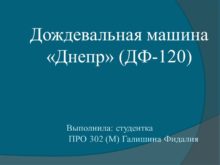 Дождевальная машина «Днепр» (ДФ-120) Выполнила: студентка ПРО 302