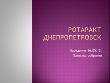 Ротаракт Днепропетровск Заседание 16.05.13. Повестка собрания Ужгород. Обучение