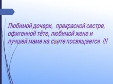 Любимой дочери, прекрасной сестре, офигенной тёте, любимой жене