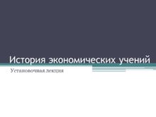 История экономических учений Установочная лекция Вопросы Формы занятий