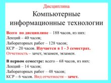 1 Дисциплина Компьютерные информационные технологии Всего по дисциплине