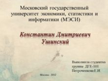 Константин Дмитриевич Ушинский Московский государственный университет экономики, статистики