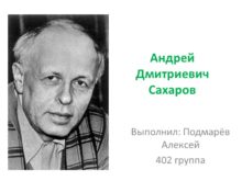 Андрей Дмитриевич Сахаров Выполнил: Подмарёв Алексей 402 группа