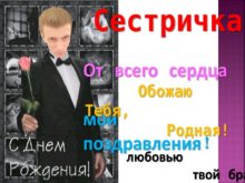 Сестричка От всего сердца мои поздравления! Обожаю Тебя,
