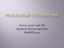 Резьбовые соединения Лектор: доцент каф. 202 Дорофеев Виктор
